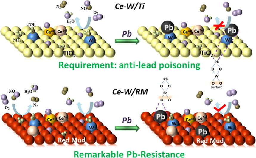 16Substantially enhanced anti-lead poisoning performance on the CeO2-WO3 pairs supported by red mud: Sacrificial effect of Fe2O3 Chemical Engineering Journal [link]
