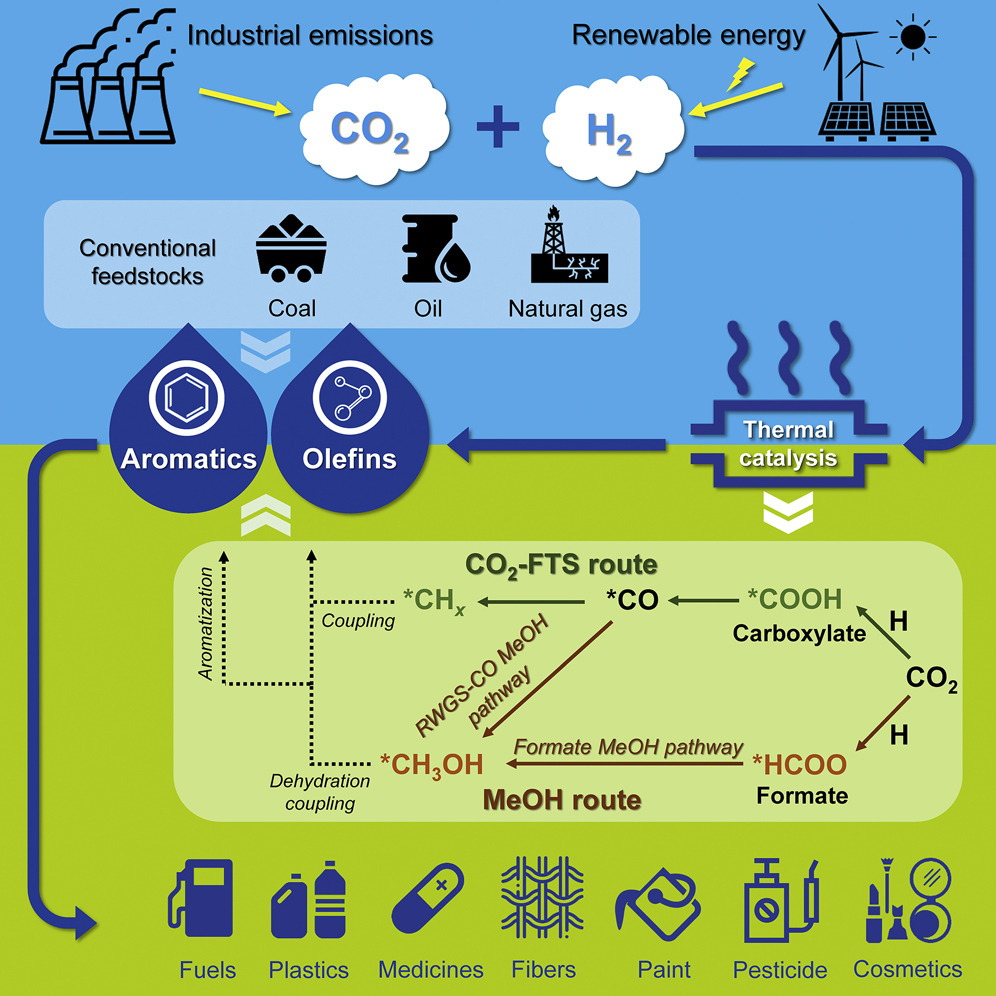 38Recent advances in carbon dioxide hydrogenation to produce olefins and aromatics. Chem [link]